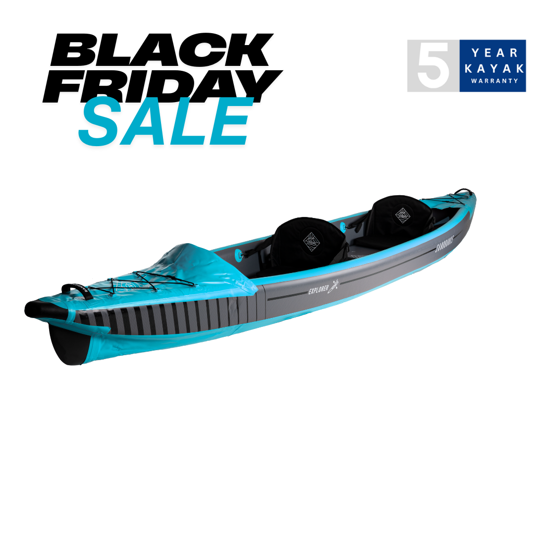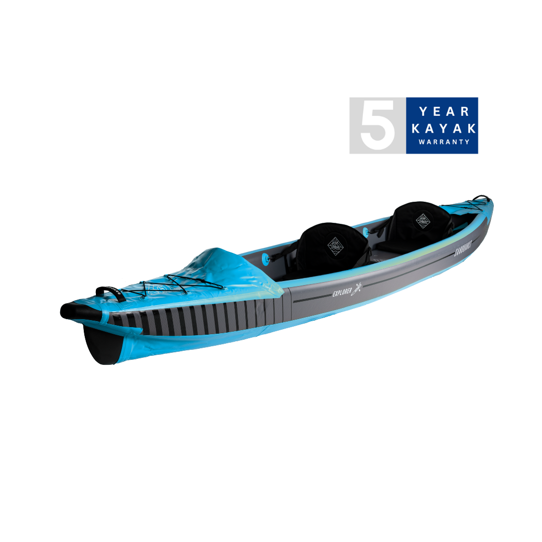 The Explorer kayak comes with two removable deluxe kayak seats, two 4-piece paddles, two foot rests & a new, improved wheel bag as well as a removable skeg to add speed and stability.