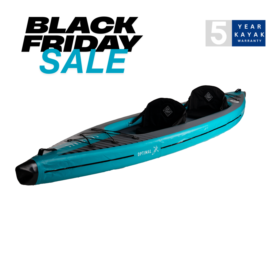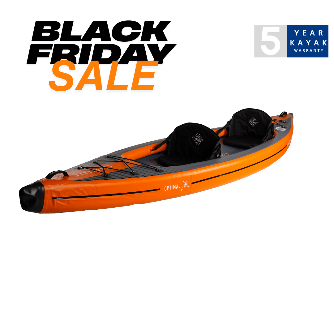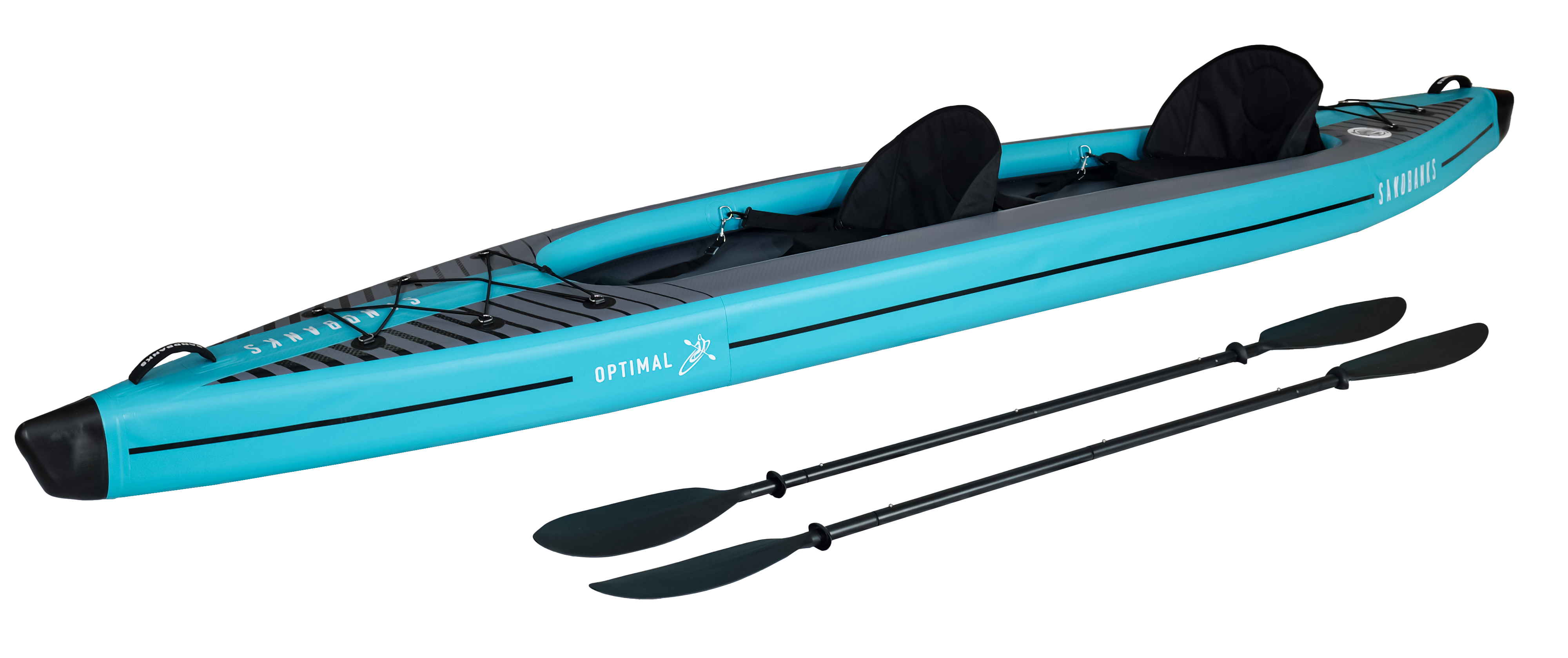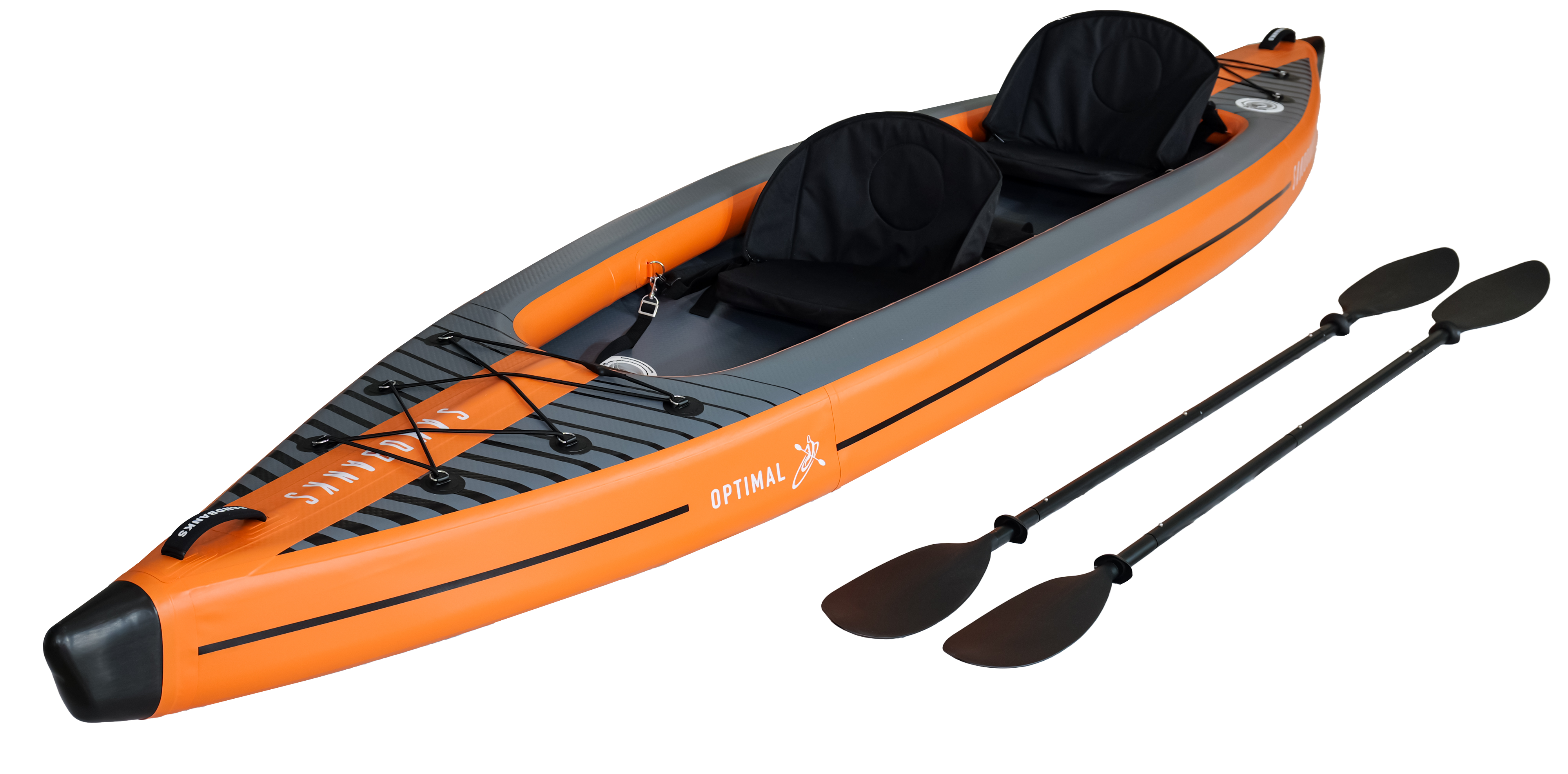 The Optimal kayak comes with two removable deluxe kayak seats with a more back support, two 4-piece paddle & a new, improved wheel bag, double action Bravo pump as well as a removable skeg to add speed and stability. The double optimal model also comes with one adjustable foot rest for the rear paddler.