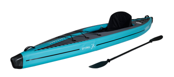 The Optimal is an inflatable, crossover kayak that truly excels in any water and is designed to feel just like a solid kayak and not compromise on performance. The Optimal will help inspire confidence in with a balanced rocker profile for speed on the flat and maneuverability in whitewater. The V-shaped hull is designed for stability and also helps the Optimal cut through the water effortlessly making it ideal for ocean, river and lake paddling. The rounded stern sheds water easily, making it forgiving in moving water. There are luggage straps at the front and rear so it has plenty of room for dry bags and gear for your day on the water.