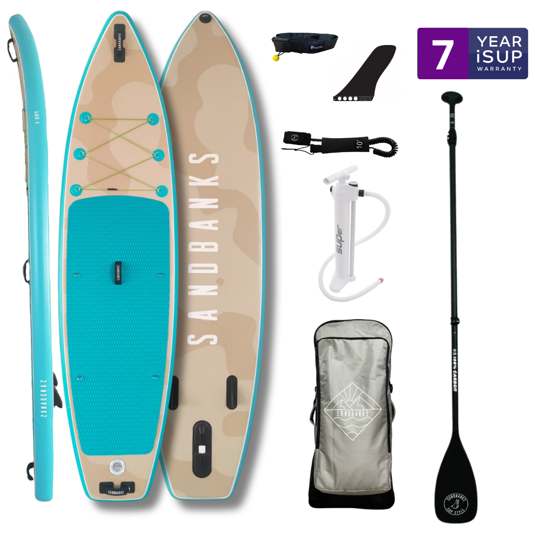 What makes this package even better? A full upgraded accessory package including a wheeled rucksack bag, free fibreglass paddle, Bravo SUPer pump, quick lock fin with a folding US fin box, coiled ankle leash and quick release waist leash.